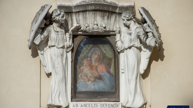 Située place du Saint-Office, une fresque représentant la Vierge à l’Enfant est sortie intacte d’un intense bombardement pendant la Seconde Guerre mondiale. Elle est désormais l’objet d’une vénération particulière.