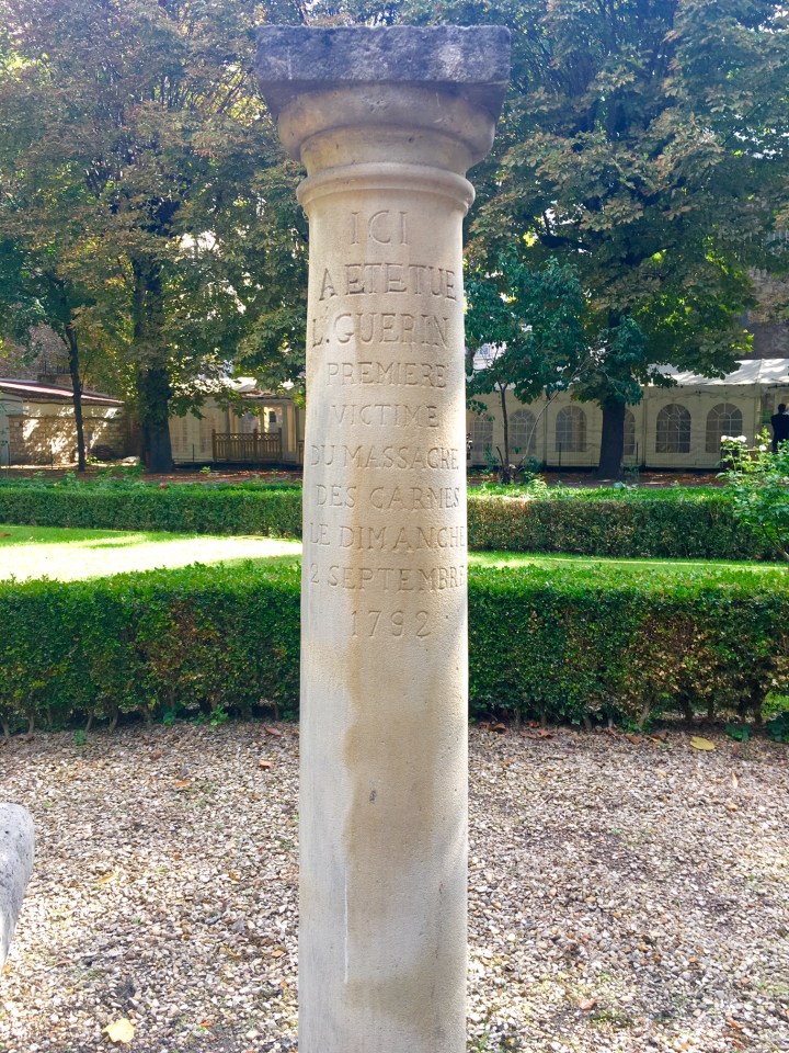 Rien ne justifie le massacre du couvent des Carmes, mais l’arrivée des Prussiens, aux portes de Paris, inquiète les révolutionnaires. Les religieux et prêtres représentent alors, à leurs yeux, une cinquième colonne, susceptible de s’allier avec l’ennemi. Il faut donc les éliminer. Le 2 septembre vers 16h, au moment de la promenade journalière des détenus, des enragés pénètrent avec leurs armes à l’intérieur du couvent, blessant à mort plusieurs prêtres. Au lieu de tous les tuer sur le champ, les commissaires de la section du Luxembourg s’amusent à organiser un simulacre de procès, dans la sacristie, pour les forcer à prêter serment. À chaque refus, c’est l’exécution. Deux heures plus tard, ce sont en tout cent quinze cadavres jetés dans le puits ou dans le jardin du couvent, massacrés à l’épée par les Sans-Culottes. Jean Guitton écrivait : « Ce que le Colisée est à Rome, la chapelle des Carmes l’est à la France ».