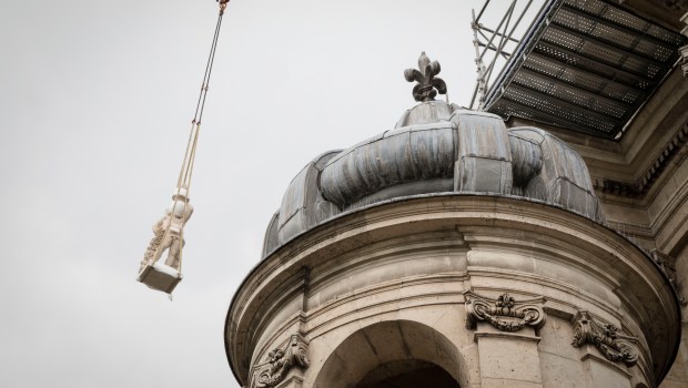 C’est l’un des plus gros chantiers de taille de pierre de France de ces dernières années. Les sculptures des anges et des génies du dôme de l’église du Val-de-Grâce (Paris), déposées pour certaines depuis 24 ans afin d’être restaurées, vont être remplacées par des copies qui sont actuellement en cours d’installation.L’abbaye du Val-de-Grâce, fondée au XVIIe siècle par la reine Anne d’Autriche en reconnaissance de la naissance du dauphin, le futur Louis XIV, accueille aujourd’hui le musée et la bibliothèque du service de santé des armées ainsi que l’école du Val-de-Grâce. De nombreuses sculptures extérieures du dôme de l’église, réalisées par Philippe de Buyster au XVIIe siècle, ont été déposées ces dernières décennies en raison de leur état de dégradation préoccupant. Après plusieurs années de chantier, les copies réalisées par des artisans spécialisés, vont enfin être installées sur le dôme.