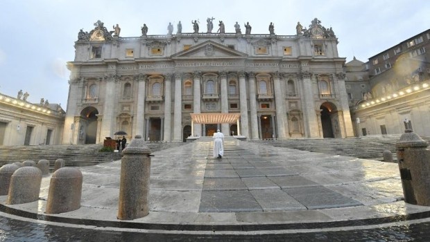 Le pape François avance seul, sous le ciel gris de la nuit qui commence à tomber, sur le parvis de la basilique Saint-Pierre totalement vide… Quelques instants plus tard une prière exceptionnelle commencera par la lecture de l’évangile du miracle de la tempête apaisée (Mc 4, 35-41) Une initiative historique qu’il commente ainsi dans son post : “Que, de cette colonnade qui embrasse Rome et le monde, descende sur vous, comme une étreinte consolante, la bénédiction de Dieu”.