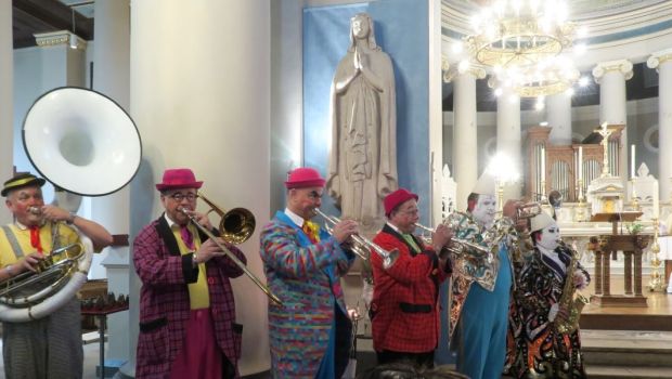 La messe de la Saint-Fiacre a rassemblé ce 9 juillet forains et habitants en l’église Saint-Germain de Saint-Germain-en-Laye (Yvelines). Cette tradition perdure depuis pas loin de 400 ans.Trombones, saxophones, vestes bigarrées, chapeaux colorés, maquillage osé… Les clowns étaient au rendez-vous dans l’église de Saint-Germain-en-Laye (Yvelines) jeudi 9 juillet pour la messe de la Saint-Fiacre. Une tradition qui perdure depuis près de quatre siècles. Dans la forêt de Saint-Germain-en-Laye, un oratoire est dédié à saint Fiacre, patron des jardiniers, fêté le 30 août. Chaque année, au cours de la Fête des Loges, qui se tient de la fin juin à la mi-août, les forains le célèbrent au cours de festivités avec procession, fanfare et messe sur un manège d’auto-tamponneuses.