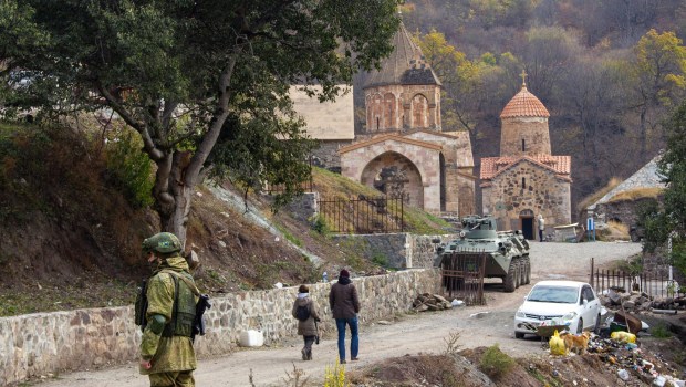 Dimanche un véhicule blindé russe était stationné dans la cour du monastère. Trois prêtres arméniens sont là, en soutane, dont le père Hovhannes : “La garde du monastère a été confiée aux soldats russes. Il reste à l’Église apostolique arménienne. Les autorités arméniennes vont garder le contrôle du monastère et de ses environs, les Arméniens pourront continuer à venir prier ici”, a-t-il affirmé.