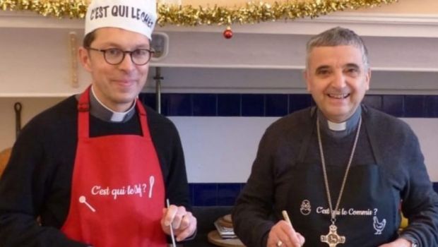 Dans une vidéo cocasse diffusée sur la chaîne YouTube du diocèse de Rouen, Mgr Dominique Lebrun, archevêque de Rouen, et l’abbé Alexandre Gérault, son vicaire, déclinent avec humour la recette des coquilles Saint-Jacques sauce safran.En matière culinaire, de l’ortolan à la coquille Saint-Jacques, on joue dans la cour des grands. Et l’archevêque de Rouen pourrait bien faire de l’ombre à Maïté, la reine des fourneaux landaise. Prenez Mgr Dominique Lebrun, archevêque de Rouen, et l’abbé Alexandre Gérault, son vicaire général, ceignez-les d’un tablier et d’une toque, installez-les dans une cuisine avec des coquilles Saint-Jacques, de la crème, du fumet de poisson, quelques échalottes, des filaments de safran et une Bible (du cuisinier), arrosez-le tout d’un peu de vin blanc, et vous obtiendrez la recette des coquilles Saint-Jacques sauce safran sur lit d’humour ecclésiastique.