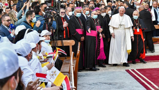 Depuis son arrivée en Irak, le pape François multiplie les temps forts. Que ce soit devant les responsables religieux ou politiques, le pontife prononce des paroles puissantes… et semble écouté.Rencontre avec les autorités, rassemblement avec les chefs spirituels des autres religions, entretien privé avec le leader des chiites, le pape François enchaîne les étapes en Irak et marque les consciences. C’est en premier lieu ce que laissaient présager les foules de chrétiens amassés sur quelques kilomètres de route à Bagdad pour saluer le convoi du pape. Si les fidèles ont pu faire le déplacement pour saluer le pape c’est parce que des cars ont été spécialement affrétés pour l’occasion par le gouvernement. Le gouvernement n’a pas lésiné sur les moyens, comme en témoigne également l’escorte monumentale de la délégation papale confiée à la fameuse “division d’or“. Ce corps d’élite est constitué principalement de vétérans de la guerre contre l’État islamique.