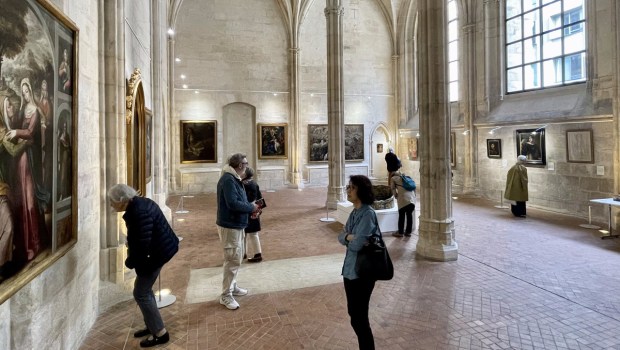 Sous la voûte d’ogives de l’ancienne sacristie du Collège des Bernardins, le temps s’est arrêté. Ils sont quelques-uns, curieux de passage après une conférence ou un cours magistral, à se croiser sous la croisée. Là, dans le bruissement des conversations qui résonnent depuis l’ancienne nef, ils s’émerveillent ou s’interrogent face à ces trésors exhumés des sacristies bien gardées du diocèse.