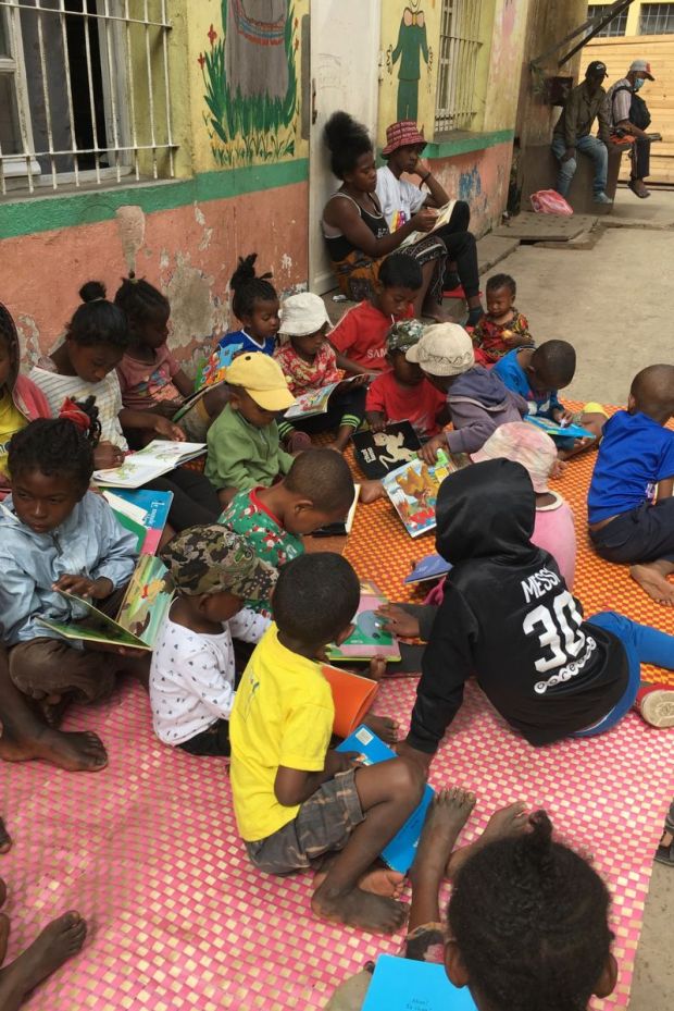"Ils me manquent. Ce sont eux qui m’ont fait comprendre que la joie réside au milieu de la souffrance. Quand on part, c’est dur de les laisser derrière soi", souffle quant à elle Elisabeth. Cette soixantenaire est partie alors qu’elle venait de prendre sa retraite, en septembre 2022. Autrefois conseillère pédagogique dans une inspection académique, elle n’a pas supporté l’idée de ne plus rien faire une fois sa carrière achevée. "J’aimais énormément mon métier qui m’a permis de travailler avec beaucoup d’enfants en situation de fragilité. Je ne voulais pas renoncer à ça", avoue-t-elle. Elle est aussitôt séduite par l’action d’Aïna, tout en étant révoltée par l’indigence dans laquelle vit le reste de la population. "À côté de l’école maternelle, il y a un centre pour les sans-abri géré par le ministère de la Population. On voyait des enfants traîner toute la journée, désœuvrés, dans des conditions d’hygiène et de logements profondément dégradantes. J’ai voulu endiguer ce sentiment d’impuissance que j’ai ressenti", se rappelle-t-elle. Pour occuper les enfants, elle monte le projet Bibliothèque de Rue : "tous les lundi matins, je déroulais des tapis à côté du centre, je prenais des livres en français et je leur lisais. On faisait aussi des coloriages. C’était un moment où ils redevenaient ce qu’ils étaient : des enfants. Progressivement, j'ai emmené avec moi des plus grands du Village Aïna pour m'aider à animer ce temps. Ils donnaient un peu ce qu’ils recevaient à l’orphelinat."