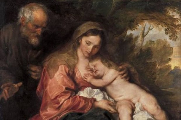 Le peintre du baroque flamand Antoine Van Dyck a choisi, quant à lui, vers 1630 une représentation "plus classique" avec Marie allaitant son enfant sous les ombrages alors que Joseph âgé apparaît plus en retrait.