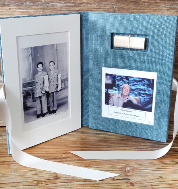 “Le plus souvent, ce sont des enfants et petits-enfants qui veulent enregistrer leurs grands-parents.” Elle rencontre alors ces grands-parents, les interroge, les fait raconter leur histoire. L’inverse est également possible : la cueillette de multiples voix comme autant de témoignages et de souvenirs offerts à une personne. “Un livre d’or sonore !” résume Valérie. Le tout est monté en podcast et une clé usb est livrée dans un joli coffret, qui trouve sa place sur le rayon des albums photos.