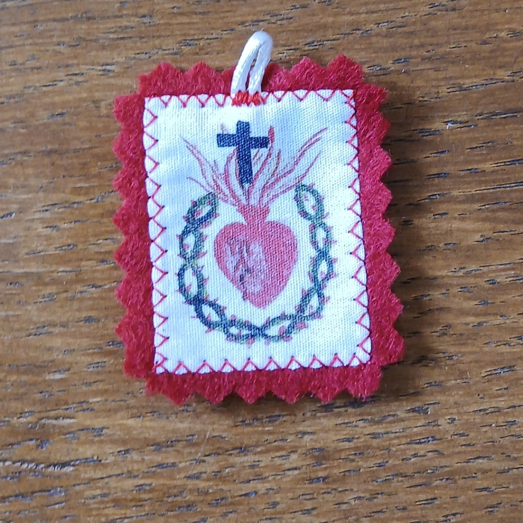 Mais qu'est-ce donc que ce petit rectangle en feutrine rouge sur lequel se détache l'image du Sacré-Cœur ? Visuellement proche du scapulaire, cet objet de dévotion prend ses origines dans les apparitions du Christ à sainte Marguerite Marie. Jésus demanda à la sainte que son Cœur puisse être porté par chacun sur soi. "Nous avons dans nos archives des lettres, dans lesquelles Marguerite Marie demande à faire imprimer ce qu'on pourrait appeler des dessins ou des gravures du Cœur de Jésus, des grandes et des plus petites reproductions à porter sur soi", explique mère Marie-Jean.