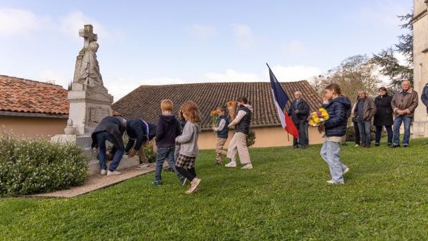 Le jour de la cérémonie, les enfants aident le maire et le président des anciens combattants à porter et déposer les gerbes au monument aux morts et chantent la Marseillaise. À la fin de la cérémonie, à la suite du maire, ils serrent la main de chaque porte-drapeau. "Ils ont compris la solennité du moment", observe Mélanie Lepoultier. Entre les porte-drapeaux et les enfants, des liens se sont créés : "Il y a la même qualité de regard des anciens combattants envers les enfants et des enfants envers les anciens combattants, un profond respect des uns pour les autres", se réjouit-elle. Une belle manière de transmettre la mémoire entre les générations.