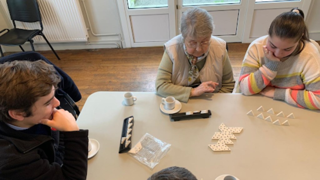 Un an plus tard, Guillaume et Bénédicte mettent en place des repas partagés et des ateliers inter-générationnels. Après le café du vendredi matin, les personnes accompagnées par l’association ainsi que les lycéens du quartier se retrouvent pour un repas partagé. L’après-midi est consacrée aux jeux de société. Un autre temps de rencontre est instauré le mercredi matin avec un cours de cuisine une fois par mois. Les activités sont adaptées au public et se veulent ludiques. Par exemple, les personnes perdant la mémoire essayent de se souvenir des recettes d’antan et racontent une anecdote en cuisinant. Après avoir cuisiné, c’est le moment des ateliers ! Tous les mercredis après-midi, une activité intergénérationnelle est proposée chaque trimestre (atelier chants, bricolage, dessin, gym, mosaïque…)