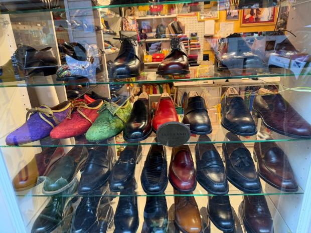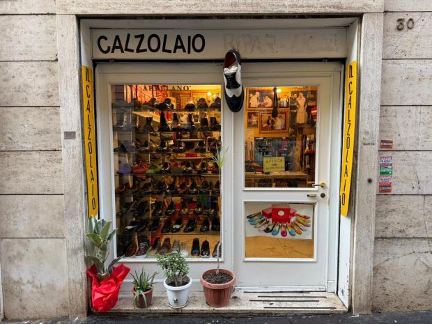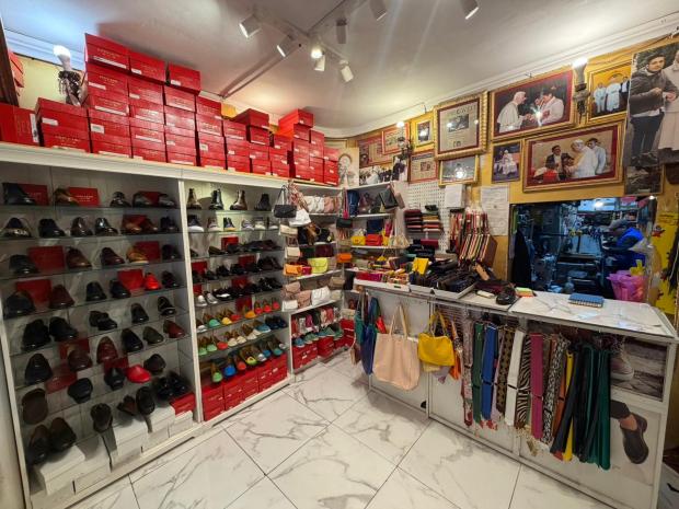"Je suis arrivé en Italie en 1990 et j’ai ouvert cette boutique en 1998", explique ce natif de Trujillo, au Pérou. Sa région natale est réputée pour la qualité de ses artisans cordonniers. Il commence à travailler très tôt et fait preuve d’un talent hors-norme, et à 14 ans, il gagne déjà "le salaire d’un maître", d’après ses mots. Poussé par la crise économique qui frappe son pays, il décide de tenter sa chance à l’autre bout du monde, en Italie, où se trouve une importante communauté péruvienne. Sur son visage, le sourire laisse place à l’émotion lorsqu’il se rappelle ses premières années à Rome. "J’ai commencé ici, en réparant des chaussures dans cet atelier", explique-t-il en désignant l’arrière-boutique. Au-dessus de son épaule, on aperçoit les outils, les chutes de cuir et les paires en cours de fabrication éparpillées sous les regards bienveillants de tableaux de la Vierge Marie et de Padre Pio.